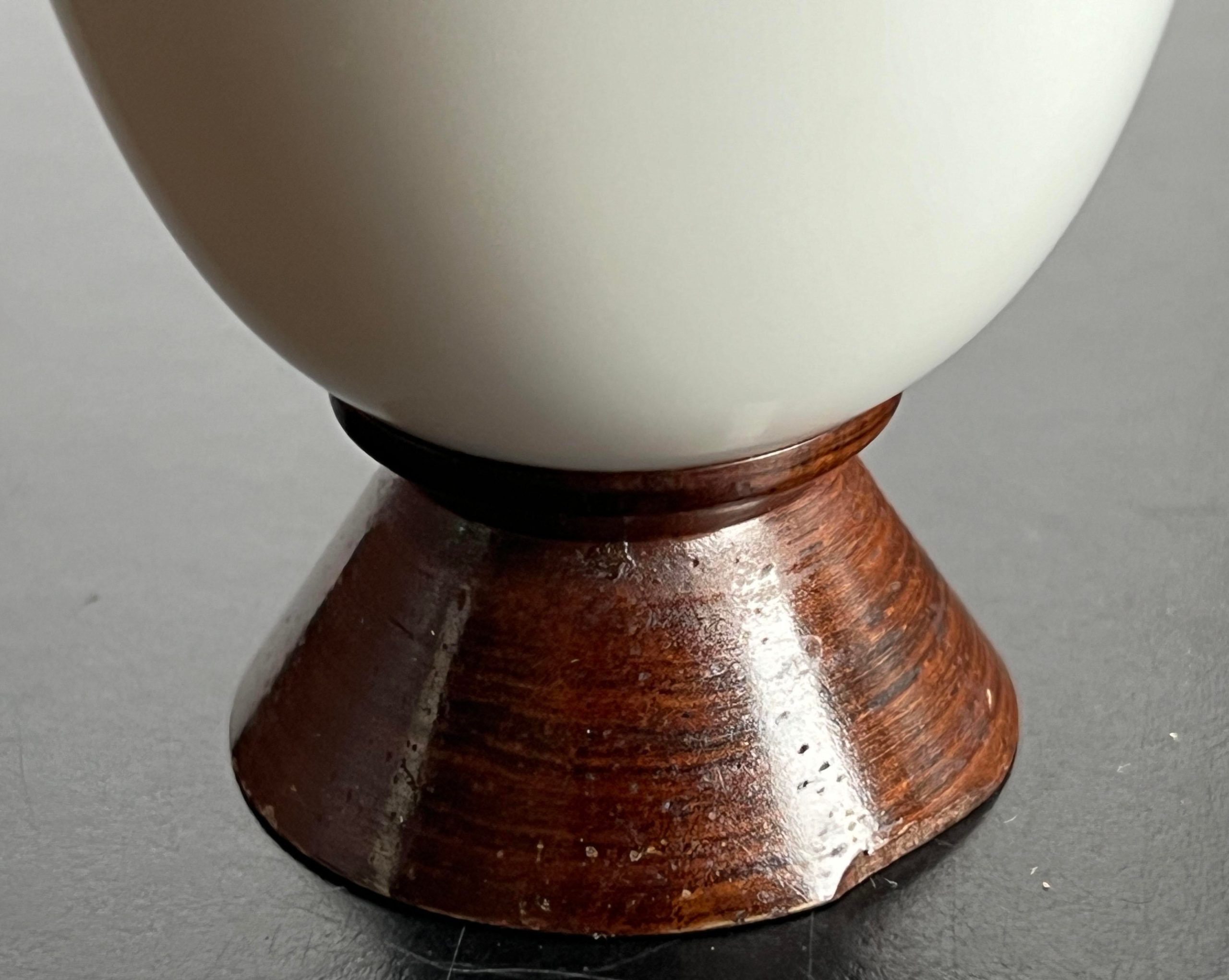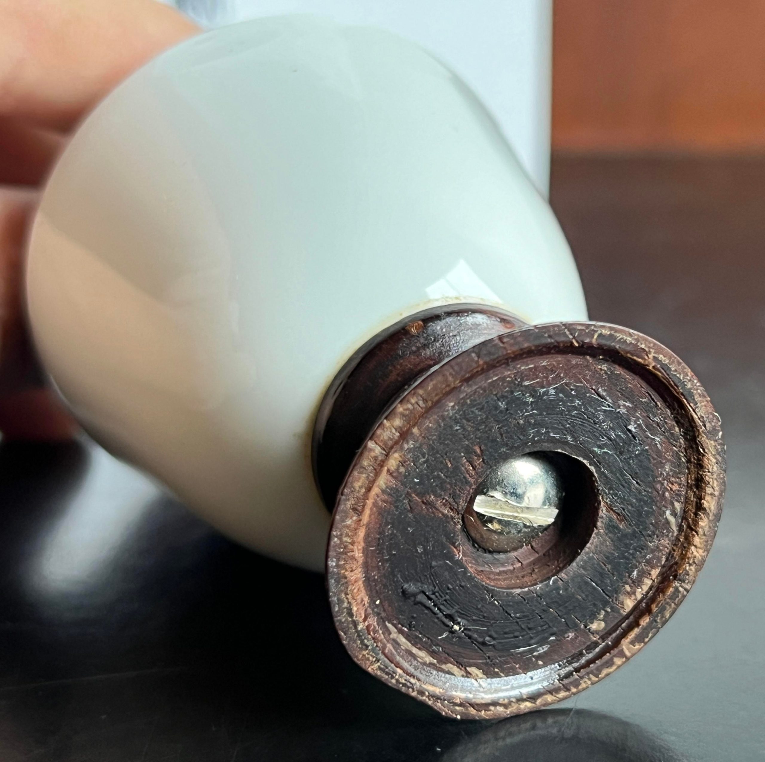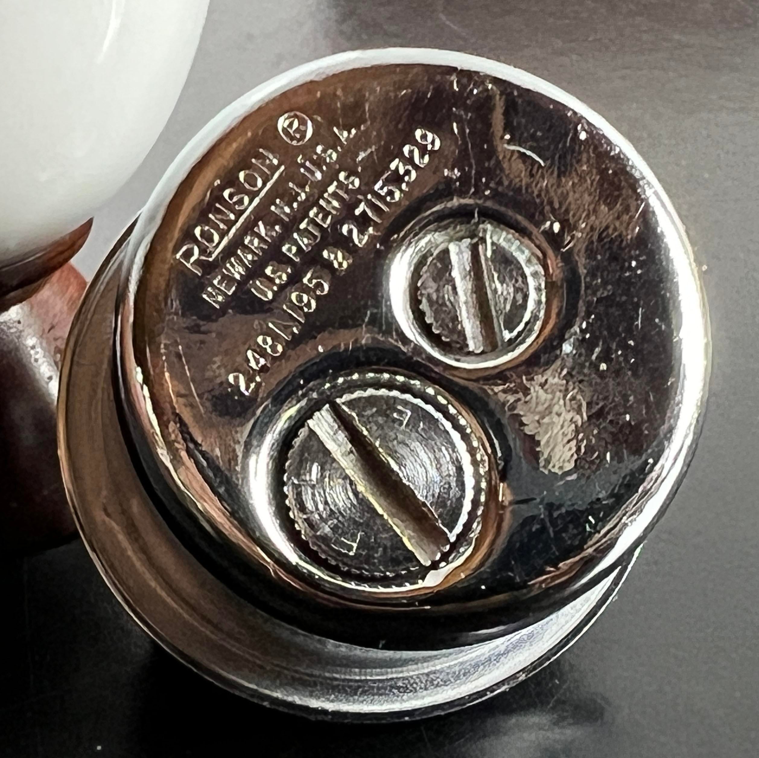 Wonderful mid century modern white ceramic & wood table lighter by Ronson, c.1950’s! Great simple form, very classic.